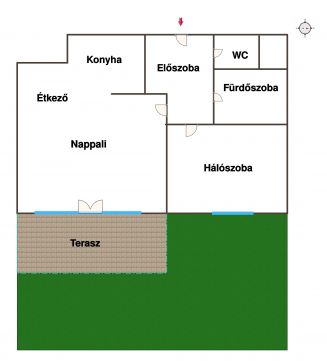 Földszinti, kertkapcsolatos, nagy terasszal és nem csak papíron jó, hanem élőben is működik.